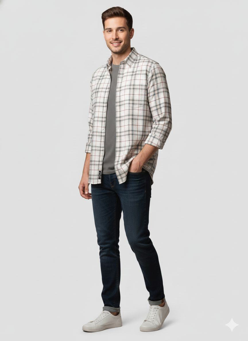Elevate your everyday wardrobe with this timeless plaid button-down. Designed with a clean, modern fit, this shirt features a sophisticated multi-tonal check pattern in neutral earth tones, making it an effortless staple for any season.