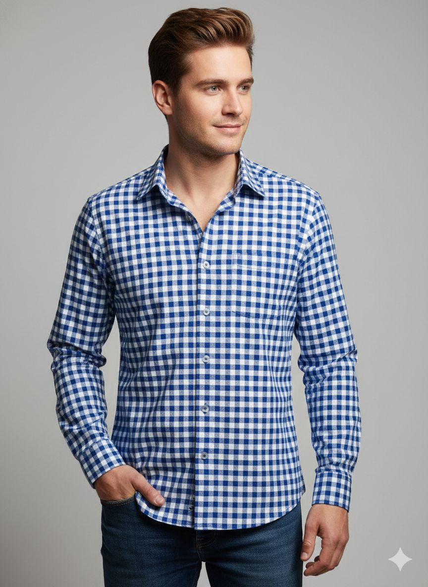 Elevate your casual wardrobe with this timeless Blue & White Gingham Check Shirt. Designed with a modern tailored fit, this shirt combines classic patterns with a contemporary silhouette, making it a versatile staple for both work and weekend wear.