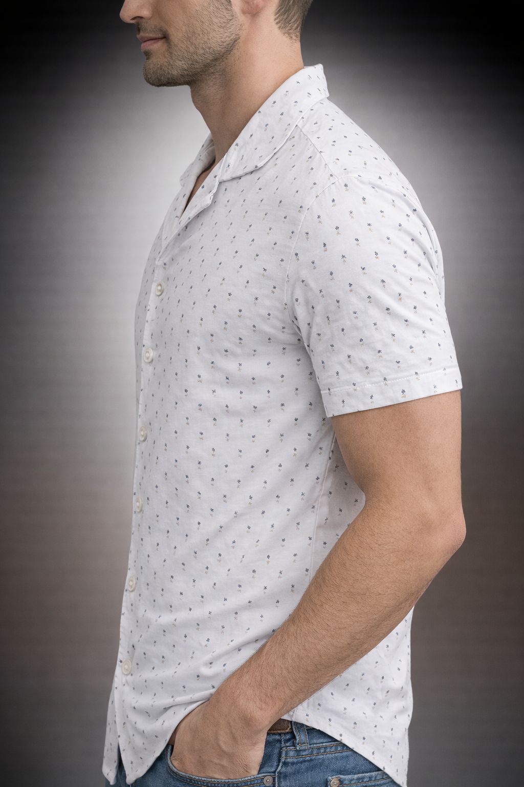 Subtle all-over print adds a refined yet casual appeal.